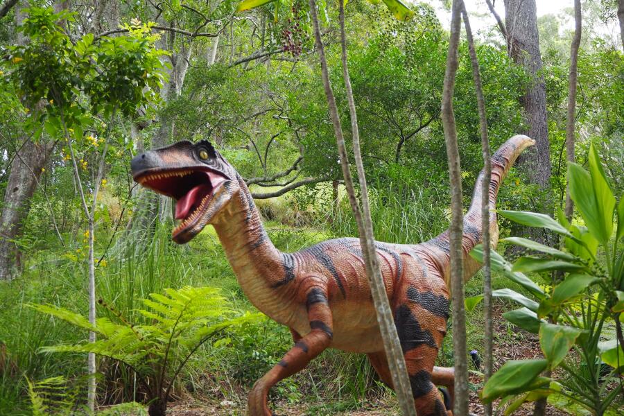 Dinosaurier tauchen erneut als stille Volumen auf. Ihre frühere Bedeutung ist nur noch Erinnerung. Geschichte wird Form.
